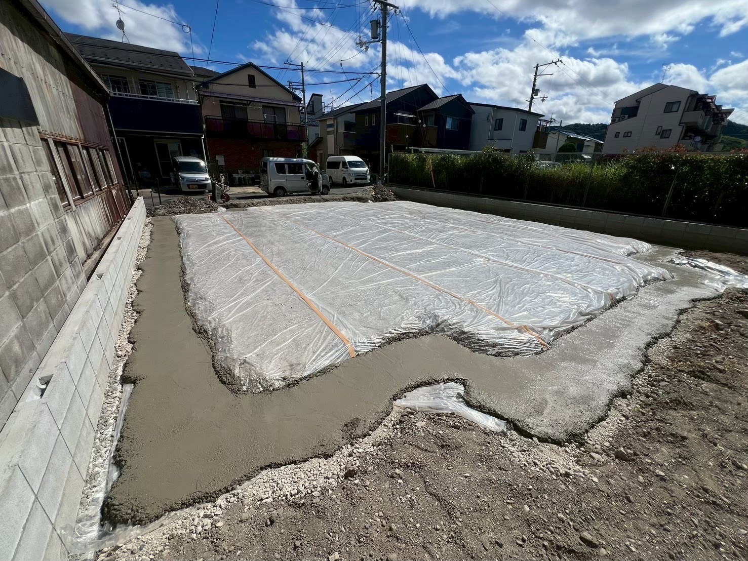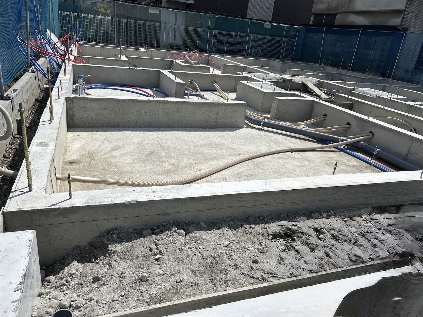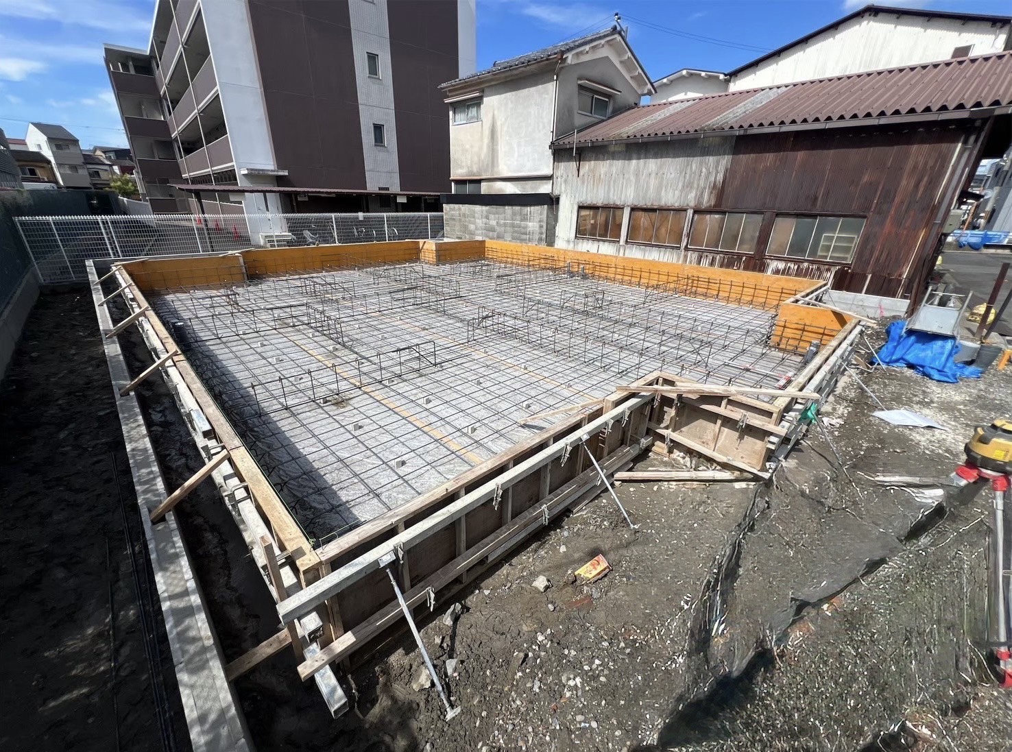 この現場は集合住宅(8軒口)の基礎工事になります。